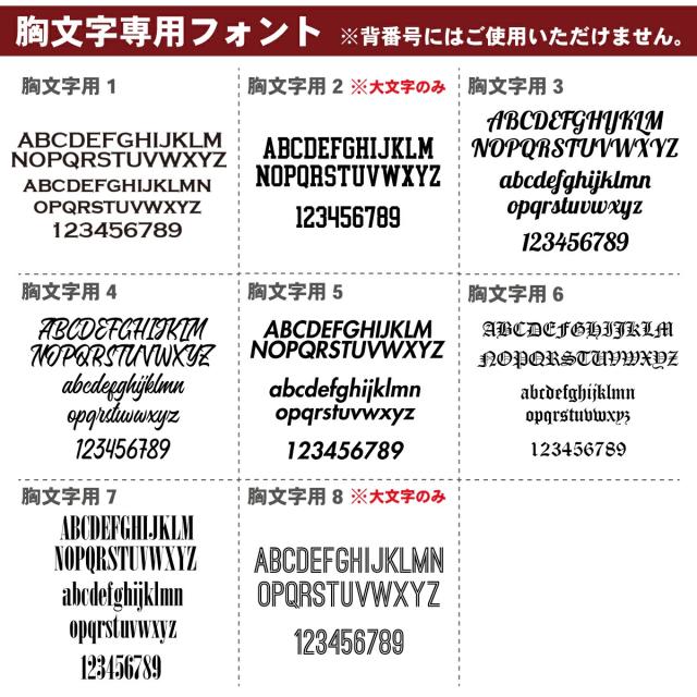 | ※注意※ | ●受注生産品のため10営業日前後いただいております。 ●ネームは10文字までとなります。 ●英数字のみご指定いただけます。 ●こちらの商品は注文確定後のキャンセル・返品はお受けできませんので、あらかじめご了承ください。 ●配送時の影響でプリント部分にシワが入っていた場合は、当て布をして中温以下の温度でアイロンをかけていただければ綺麗になります。 ※メーカー在庫商品の為在庫切れの場合がございます。予めご了解下さい。在庫切れの場合折り返しご連絡致します。 |