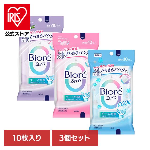 (3個)汗拭きシート 制汗剤 レディース ビオレZero さらさらパウダーシート 10枚 花王 汗拭きシート 制汗剤 レディース 汗ふきシート ボディシート 全身 さらさら 暑さ対策 汗 フローラル せっけん 無香 Biore ビオレ 花王