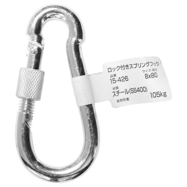 ロック付スプリングフック シルバー 8×80mm WAKI(和気産業) (15-426)