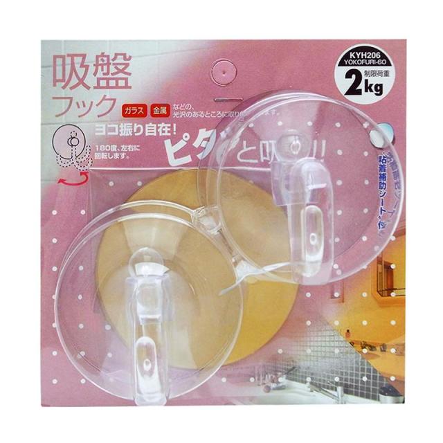 ヨコ振り自在 吸盤フック 60mm 透明 2個入り WAKI(和気産業) (KYH206)