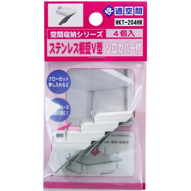 ステンレス棚受V型 シルバー・白カバー 4個入り WAKI(和気産業) (WKT-204HR)