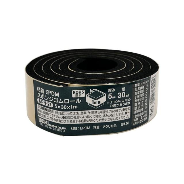 粘着EPDM スポンジゴムロール 5×30mm×1m WAKI(和気産業) (EPN-21)