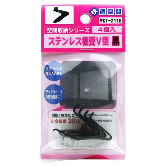 ステンレス棚受V型 黒 カバー:無し 4個入り WAKI(和気産業) (WKT-211B)