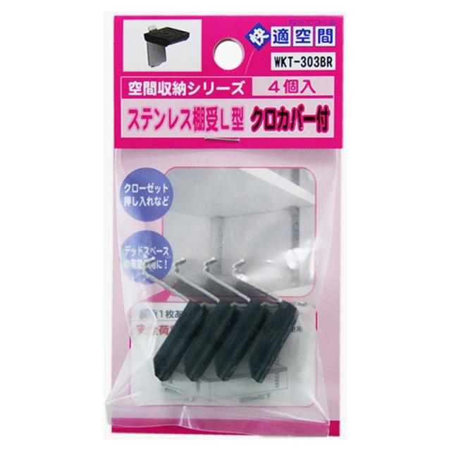 ステンレス棚受L型 シルバー・黒カバー 4個入り WAKI(和気産業) (WKT-303BR)