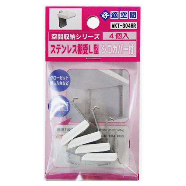 ステンレス棚受L型 シルバー・白カバー 4個入り WAKI(和気産業) (WKT-304HR)
