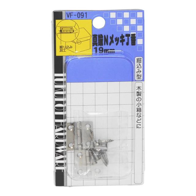 真鍮Nメッキ丁番 19mm 2個入り WAKI(和気産業) (VF-091)