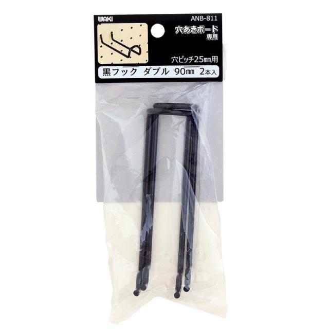 穴あきボード用 黒フックダブル 黒 90mm 2個入り WAKI(和気産業) (ANB-811)