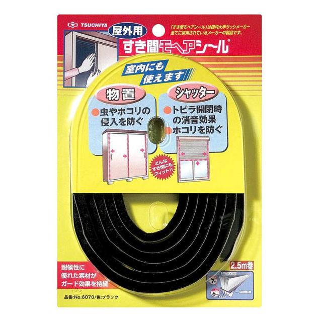 すき間モヘアシール 屋外用 ブラック 6×7mm×2.5m 槌屋 (NO.6070)