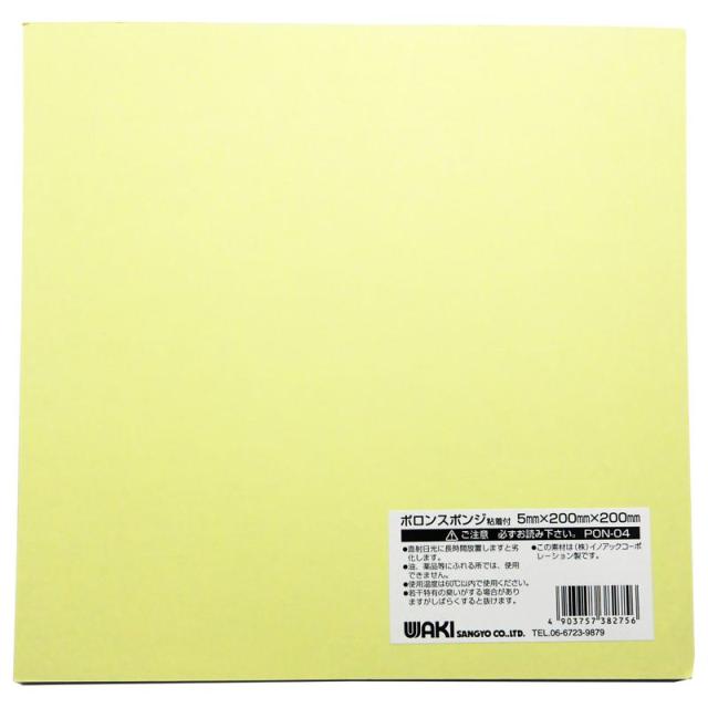 ポロンスポンジ粘着付 厚さ5mm×縦200mm×横200mm WAKI(和気産業) (PON-04)