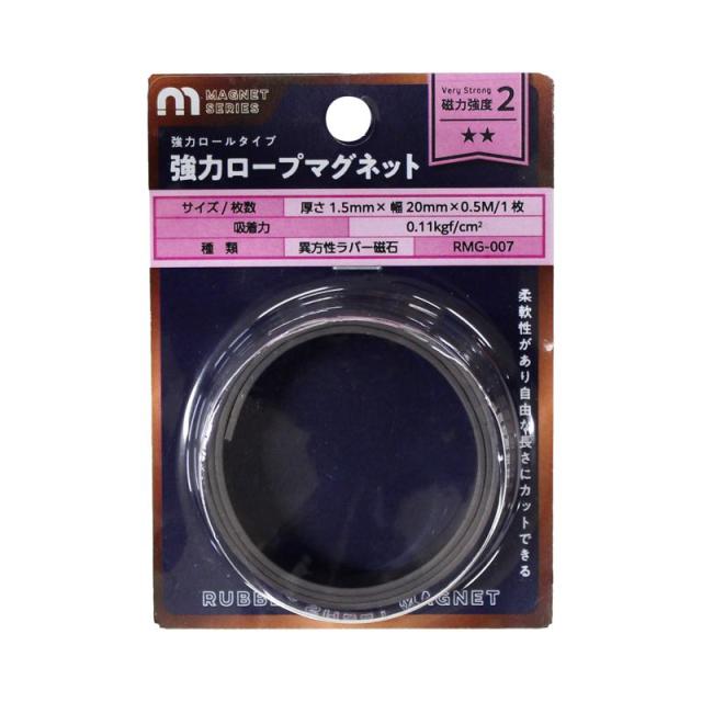 異方性ロープマグネット 幅20mm×厚さ1.5mm×長さ0.5m WAKI(和気産業) (RMG-007)