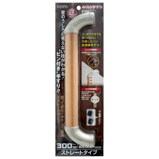 ぬくもり手すりPIN+ プラス ストレートタイプ 太さ32mm×長さ300mm WAKI(和気産業) (P32S30)