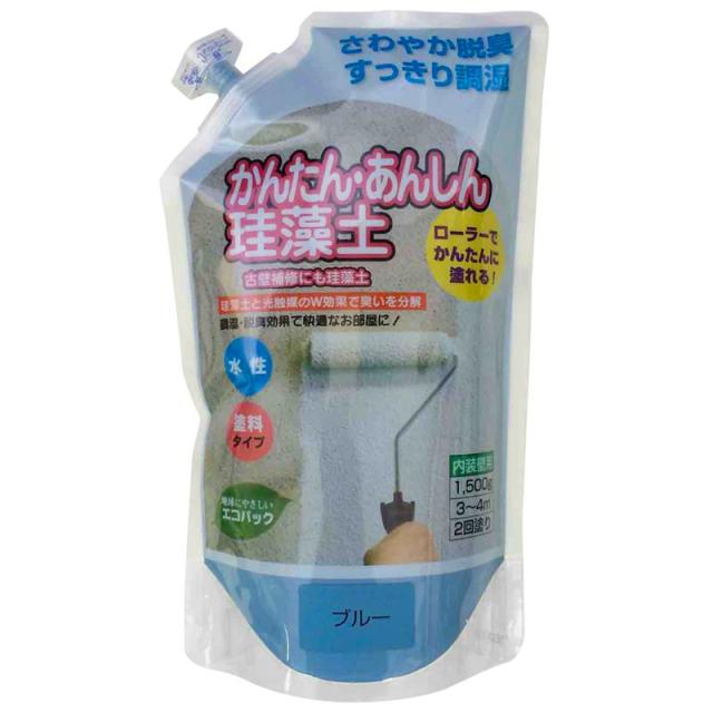 ローラーで塗れる! かんたん・あんしん珪藻土 ブルー 1.5kg フジワラ化学