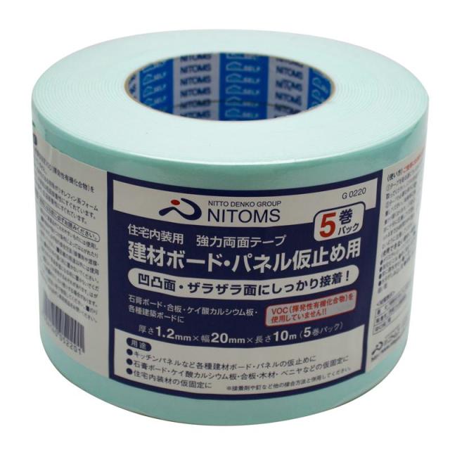 住宅内装用強力両面テープ 建材ボード・パネル板止め用 20mm×10m 5巻入り ニトムズ (G0220)