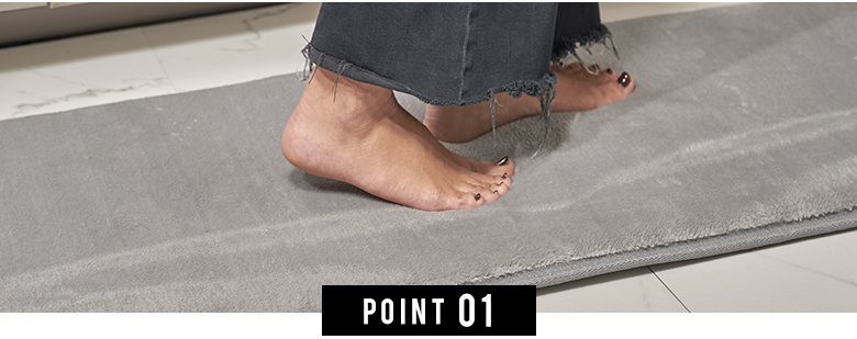 極上のふんわり感が大人気の低反発ラグマット「モフィネ」シリーズに、45×180cmのキッチンマットサイズが新登場!表面はマイクロファイバー糸のフランネル地を採用し、内部は20mmの低反発ウレタンフォームを使用。ゆっくりと包まれるように沈み込む、心地よい弾力性が楽しめます。