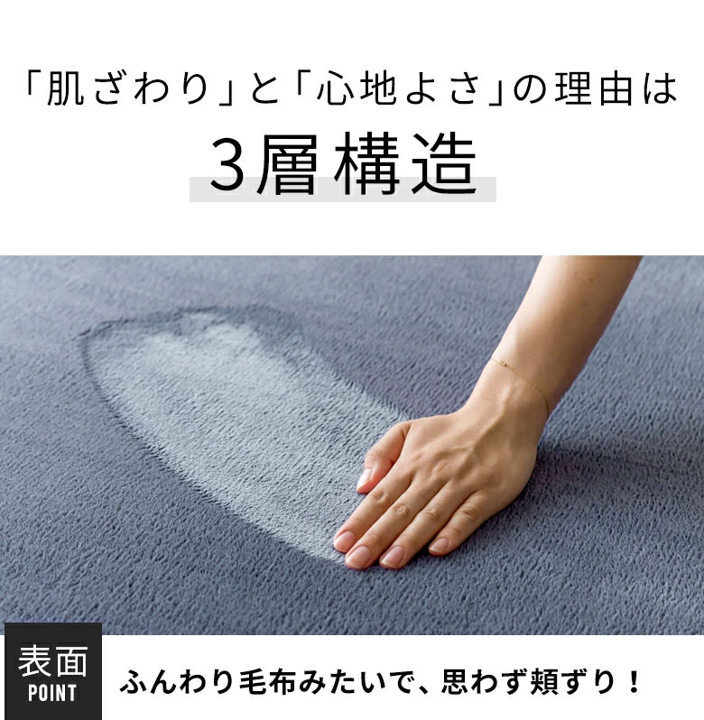 ・素材: 表面は極細のマイクロファイバー糸を使用した高級フランネル地、中材は20mmの低反発ウレタン、裏面はノンスリップ加工の施された不織布を使用。