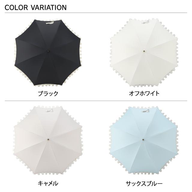 ランバンオンブルー LANVIN en Bleu 日傘 完全遮光 晴雨兼用 長傘 雨傘 レディース 50cm 軽量 UVカット 一級遮光 遮熱 シャイニーフリル