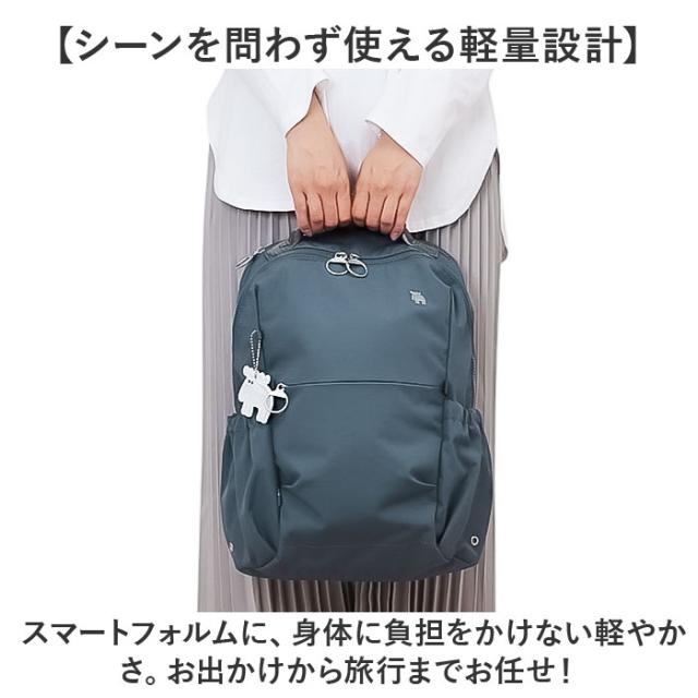 | 商品説明 | 【オールラウンドな頼れる相棒】 ・どんなスタイルにもマッチ!北欧ブランド”moz”の「撥水バックパック」。 【シーンを問わず使える軽量設計】 ・スマートフォルムに、身体に負担をかけない軽やかさ。お出かけから旅行までお任せ! 【突然の雨にも慌てない撥水性】 ・水滴や汚れをサッと弾く、撥水加工を施した高密度ポリエステル素材。お手入れも拭き取るだけ。 (※1)完全防水ではありません。 【両手を自由に使えてノンストレス】 ・程よくクッション性のある背面&ショルダー。サッと背負えてハンズフリー! 【アクティブに動くシーンでも安心】 ・ズリ落ちを防ぐチェストベルト。ワンタッチで装着でき、位置は調整可能。 【キャリーオンできて移動もラクラク】 ・背面のベルトを、キャリーのハンドルに通せるキャリーオンタイプ。 【ガバッと開くダブルファスナー】 ・指を掛けて開閉できる、リング型引手。ファスナーを閉じれば中身の飛び出しもガード。 【A4もノートPCもすっぽり収納】 ・A4OK、13インチPCが収まるクッションポケット付。荷物が1つにまとまる容量約11L◎ 【伸縮性のあるmozポケット】 ・収納物の大きさにフィット!500mlボトルが縦向きに、何も入れていない状態ではフラット。 (※2)mozポケットとはブランドキャラクター「エルク」のもつ柔らかなイメージに合わせて、内部に伸縮する生地を採用したポケットのことです。 【サクッと取り出せて迷子知らず】 ・ファスナーを隠した前面ポケット等、複数のポケットとDカン。小物を探す手間が不要。 【爽やかキュート!こだわりの内生地】 ・内生地は明るいストライプ柄。可愛いだけでなく、中身を確認しやすいつくり。 【アクセントになるリフレクター】 ・エルクモチーフのリフレクターチャーム。暗闇でヘッドライトの光を反射、視認性をアップ。 【お揃いで持てるユニセックス仕様】 ・年代や性別を問わないシンプルなデザイン。エルクの刺繍、引手の刻印がアクセント☆ |