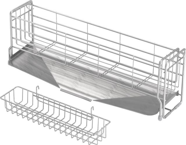 素材・材質:水切りバスケット(A・B)・小物ポケット/18-8ステンレス、脚ゴム・クッションチューブ/シリ コーンゴム、斜めトレー/18-0ステンレス