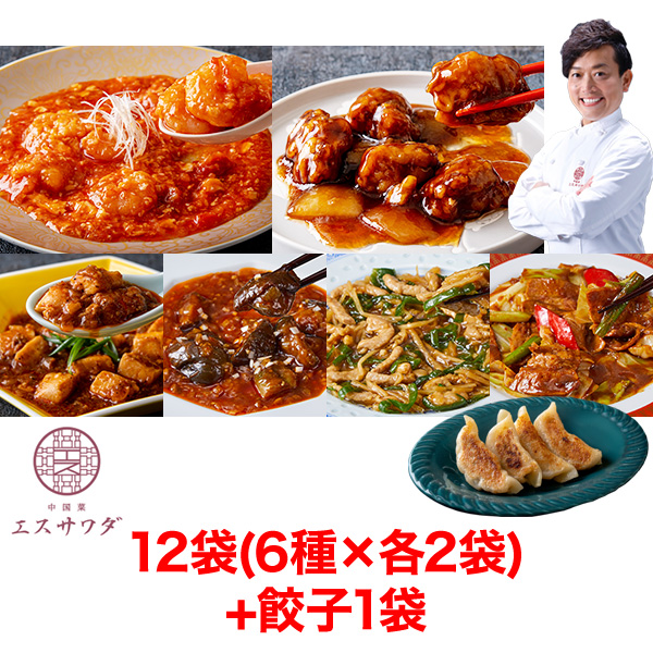海老 酢豚 麻婆茄子 青椒肉絲 回鍋肉 麻婆豆腐 TVでおなじみの澤田シェフ監修「エスサワダプレミアム中華福袋」12袋+餃子 澤田修平 エスサワダ 快適生活