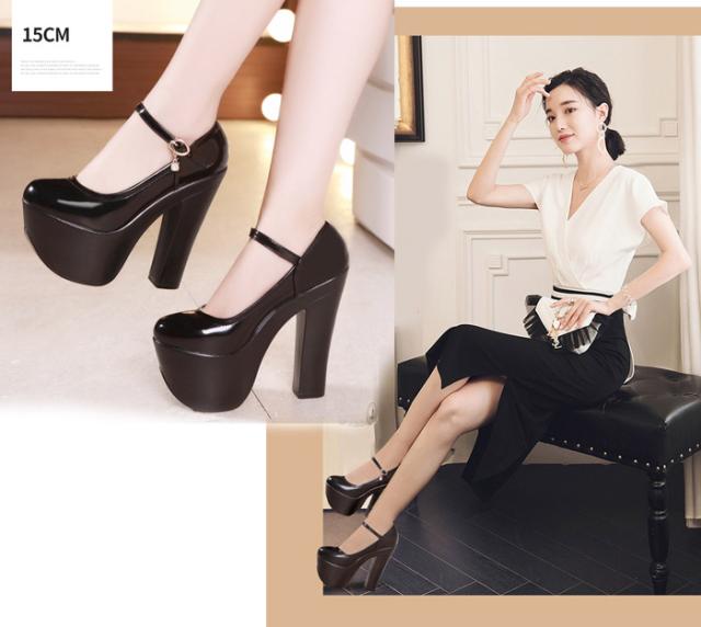 ブライダルシューズ ウェディングシューズ 結婚式 パンプス 厚底 ハイヒール 太ヒール ヒール15cm レディース キャバ嬢 エナメル アンクルストラップ きれいめ ストラップ 美脚 小さいサイズ 大きいサイズ 21.0 21.5 22.0 22.5 25.0 25.5 26.0 26.5