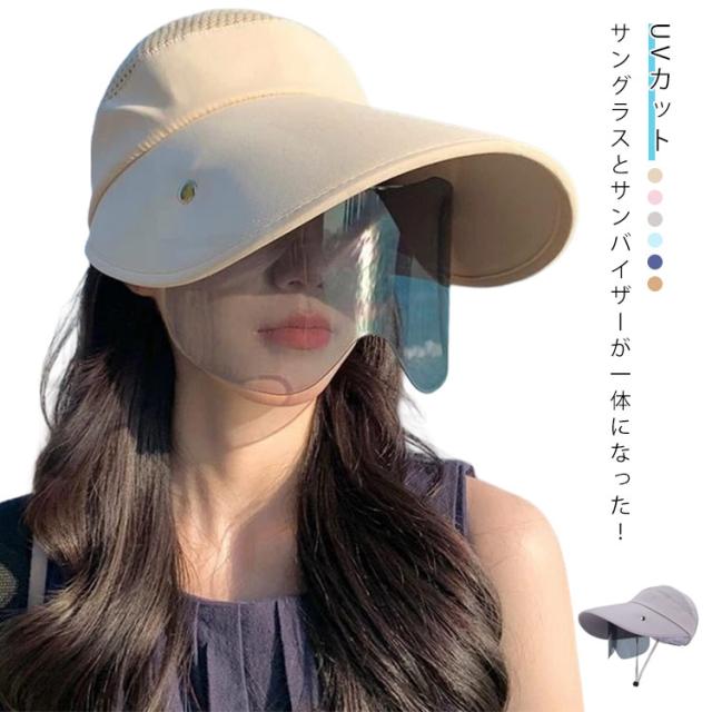 サングラスとサンバイザーの一体型 つばひろ帽子 フェイスカバー 自転車 飛ばない 日よけ帽子 uvカット サングラスとサンバイザーの一体型 遮光 帽子 ゴルフウエア キャップ ひんやり 日焼け止め対策 ガーデニング 対策 バイク 自転車 アウトドア