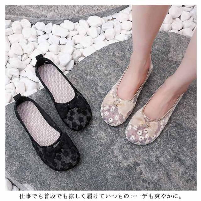 柔らかい 歩きやすい パンプス 幅広 甲高 フラットシューズ ローヒール メッシュ レディース 痛くない ぺたんこ 夏 レース 楽ちん リボン サマーシューズ 走れる 靴 花柄 ハート カジュアル 涼しい 女性 母 はは