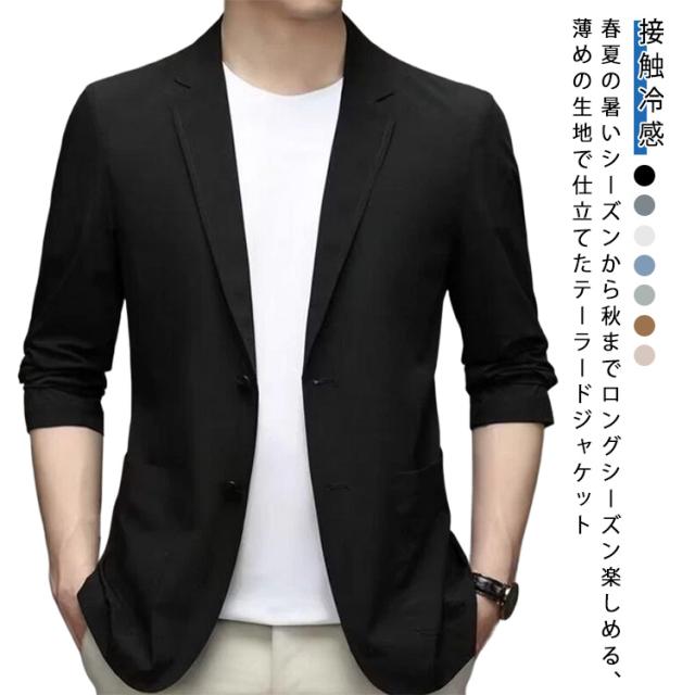 カジュアルジャケット 極薄 長袖 アイスシルク アウター メンズ 極薄 テーラードジャケット サマージャケット 春夏 カジュアル 無地 吸水速乾 ブレザー 大きいサイズ スーツジャケット 紫外線対策 涼しい 軽量 おしゃれ 薄手 春服 送料無料