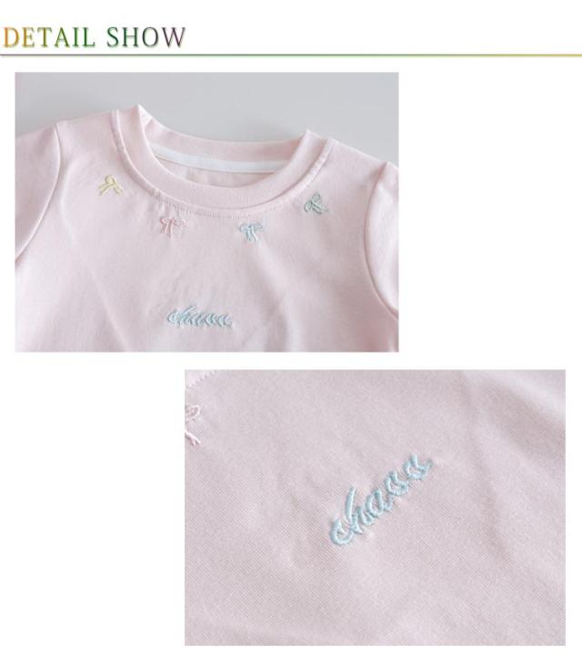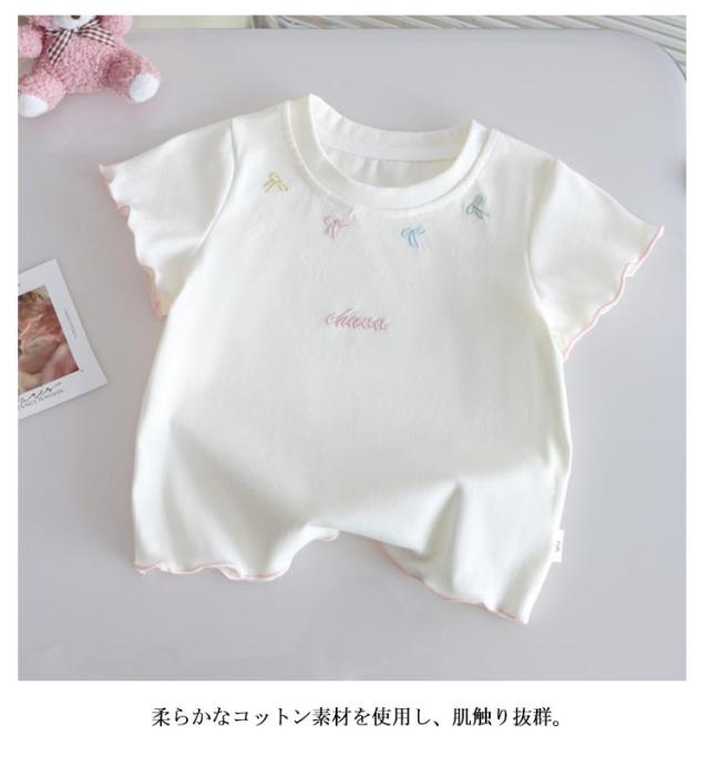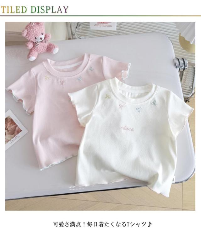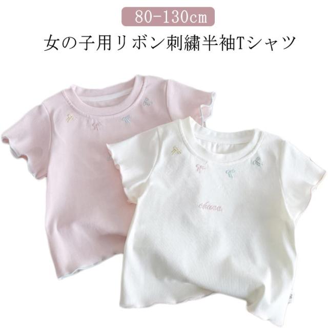 tシャツ トップス かわいい 【送料無料】半袖 Tシャツ 【送料無料】半袖 女の子 リボン 夏用 キッズ 刺繍 子供用 シンプル おしゃれ ガールズ ベビー服 通園 通学 保育園 幼稚園