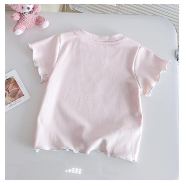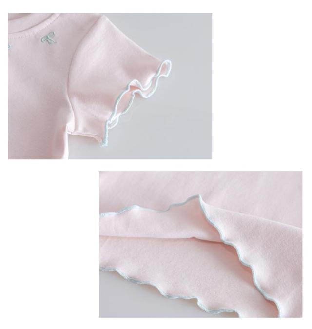 | 女の子用リボン刺繍半袖Tシャツ 可愛さ満点!毎日着たくなるTシャツ♪ 柔らかなコットン素材を使用し、肌触り抜群。 女の子らしい可愛さが際立つ、毎日のコーディネートにぴったりな一枚です! | |