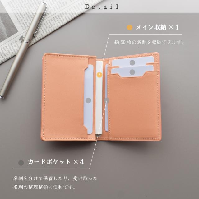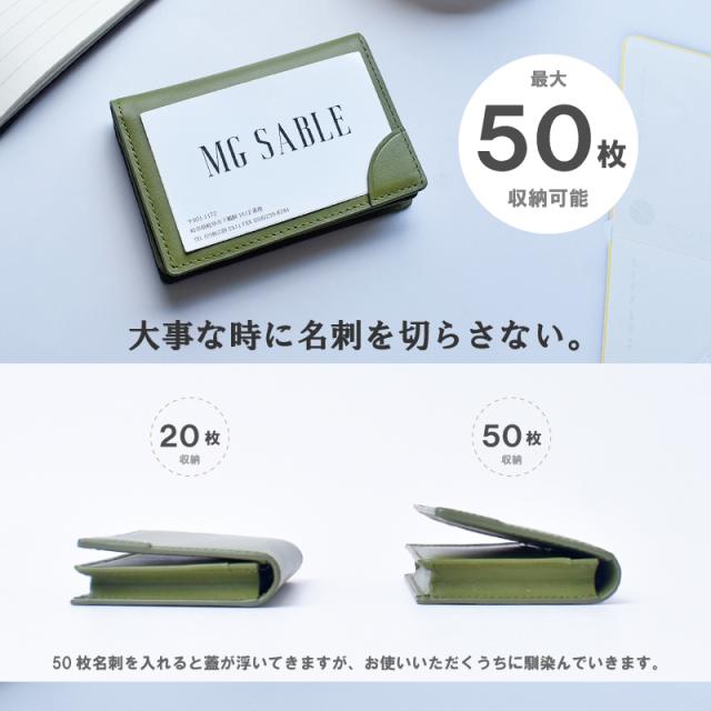 ビジネスシーンに、上質な本革の品格を。 男女問わず使える、大容量スムースレザー名刺入れが新登場! 【こんな方におすすめ】 ・本革の名刺入れを選ぶ本物志向の方 ・スマートに名刺管理をしたい方 ・機能性とシンプルなデザインを好む方 ・大切な方への贈り物をお探しの方 【「もらった名刺をどこに置こう?」と迷わない。】 ・カードホルダー×1 いただいた大切な名刺を、すぐに、そしてスマートに収納できます。 ・メイン収納×1 約50枚の名刺を収納できます。 ・カードポケット×4 名刺を分けて保管したり、受け取った名刺の整理整頓に便利です。 【上質な牛革】 表も裏も、しっとりと手に吸い付くようなスムースな牛革仕立て。 表面に特殊なコーティングを施す事により、雨や汚れに強く耐久性があります。 本革のマットな質感が上品さを演出します。 【認証試験】 お客様に安心してご購入頂けるように、MGSABLEでは本革の認証試験を行っております。 【大事な時に名刺を切らさない。】 最大50枚名刺を収納できる大容量。 ※50枚名刺を入れると蓋が浮いてきますが、お使いいただくうちに馴染んでいきます。 【カラーは13色】 豊富なカラーの中から、自分の好みや個性にぴったりの色をお選びください。 【男女兼用デザイン】 シンプルなデザインなので性別問わずお使いいただけます。 ギフトにもおすすめです。 【“革の表情”について、ご購入前にご確認下さい。】 本製品は牛本革を使用しておりますので、キズやシワなどが入っている場合がございます。 これらは本革ならではの個体差によるものと、2つとない表情を魅せる革の個性であるため、 風合いをお楽しみ頂けると幸いでございます。 ※ひどく目立つものは除いて、ある程度は革の個性としてそのまま出荷・発送致します※ ※上記のような革の個性による返品・交換は原則お受け致しかねますので、予めご了承下さいませ※ (上記のような症状は使用する程に、徐々に革が馴染み目立ちにくくなっていきます。) |