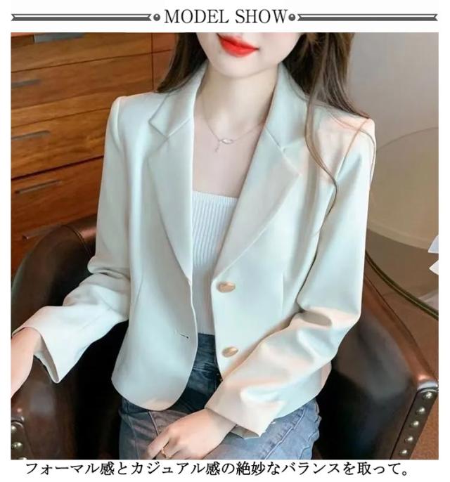 フォーマル スーツ ジャケット 学生服 ショート丈 スーツ生地 春 韓国風 キレイめ カジュアルスーツ ブレザー 通学 テーラードジャケット レディース 通勤 テーラードジャケット 30代 女子 秋 制服 レディース 高校生 ビジネス 20代 春秋 40代 50代 ライトアウター アウター