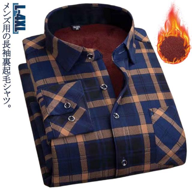 | メンズ用の長袖裏起毛シャツ。 モコモコとした裏ボア加工が施され、暖かくて優しい着心地をもたらす。 1枚着用で、セーター+シャツ+インナーウェアの3枚の役割が果たせる。厚手の複合生地なので、洗ってもシワが出にくくて縮まないのも嬉しい。 クラシカルなチェック柄デザインがレトロ感とカジュアルな雰囲気を演出してくれる。配色的にも落ち着きがあり、男性が気軽に着こなせる。 メインとしても、コートやジャケットなどと重ね着してもよろしい。 幅広い場合で着こなせて、秋冬ファッションに必ず大活躍のアイテム! | |
