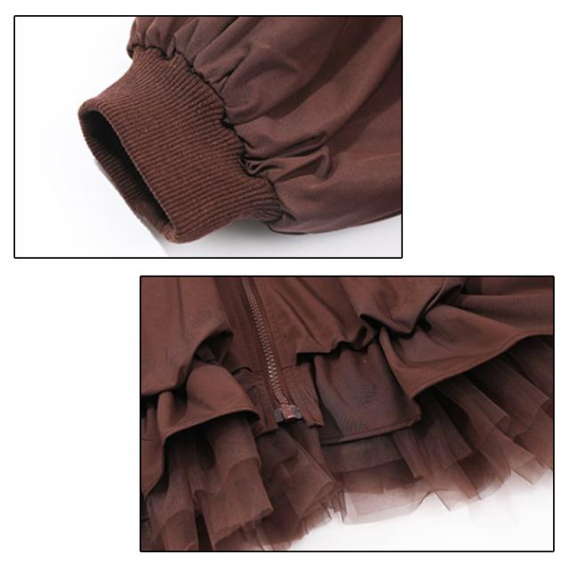 | 90-140cm!チュールと切り替えの大人っぽいおしゃれなキッズ用ウィンドブレーカー、周りと差をつける1枚。 デニムパンツやカーゴパンツなどボトムスを選ばず、合わせやすい。 肌寒い時にサッと羽織れる便利アイテム◎着回し力抜群で1枚あると大活躍! | |