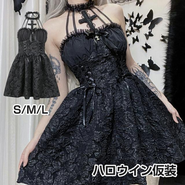 ワンピース ハロウィン 魔女 衣装 コスプレ 大人 ゴシック風 ドレス レディース コスチューム ゴスロリ 仮装 悪魔 個性的 クリスマス ギャル系 セクシー 大 原宿系