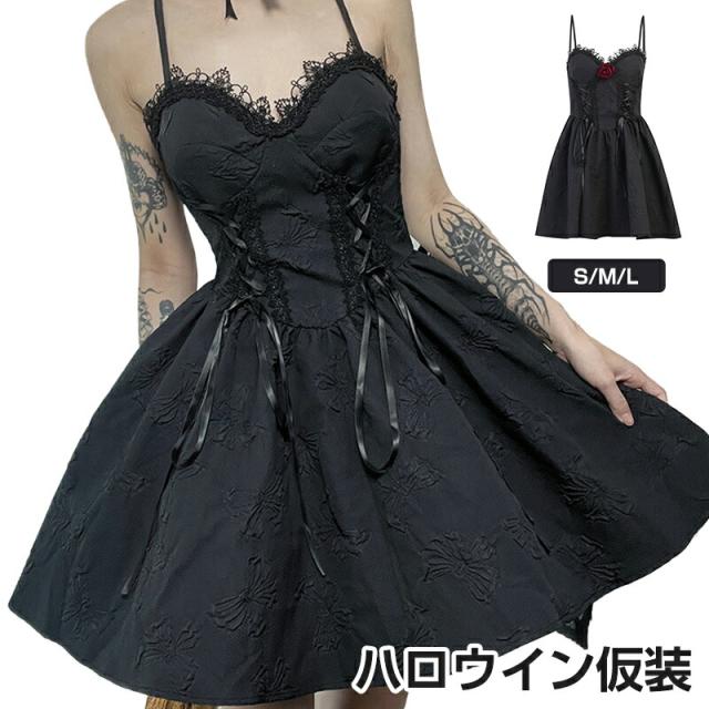 ワンピース ハロウィン 魔女 衣装 コスプレ 大人 ゴシック風 ドレス レディース コスチューム ゴスロリ 仮装 悪魔 個性的 クリスマス ギャル系 セクシー 大 原宿系