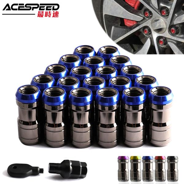 スチールホイールロックlugナット、volkスタイルの隠しダンピング式、チタンカラーボディ、m12x1.5 m12x1.25、セットあたり20個