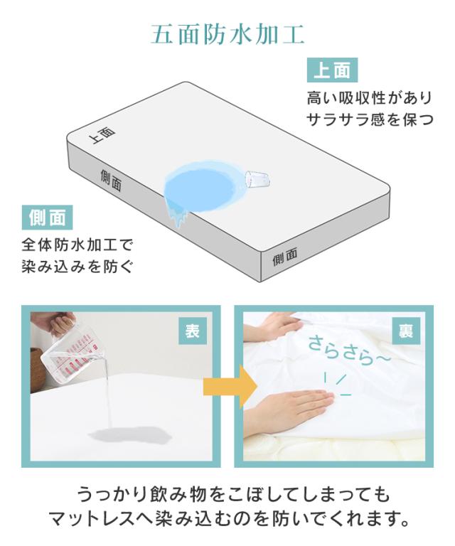 防水面は上面だけでなく、側面もカバーするため、マットレスへの漏れの心配なし!