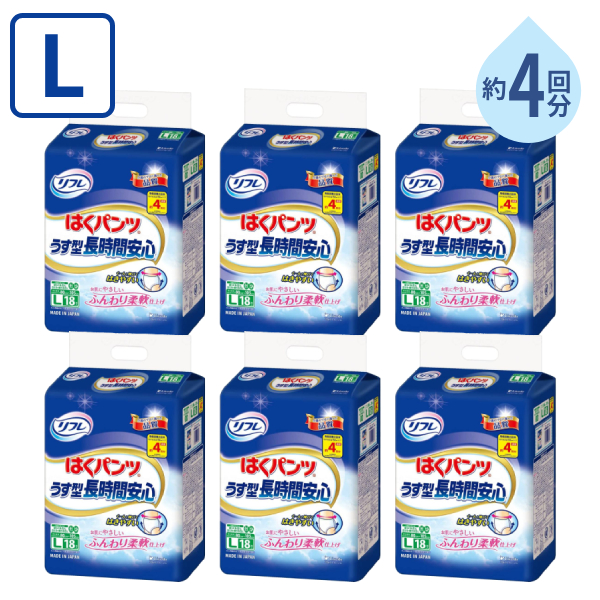 (1ケース) 18枚×6袋 約4回分吸収 大人用紙パンツ 男女兼用 リフレ はくパンツうす型長時間安心 Lサイズ 18枚 リブドゥ 高齢者 老人 介護 紙おむつ パンツタイプ リハビリパンツ 介護用品
