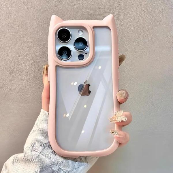 かわいい猫耳クリアソフトシリコンバンパー電話ケース iphone 11 ケース iphone 15 16 14 13 12 プロマックス耐衝撃バックカバー Funda
