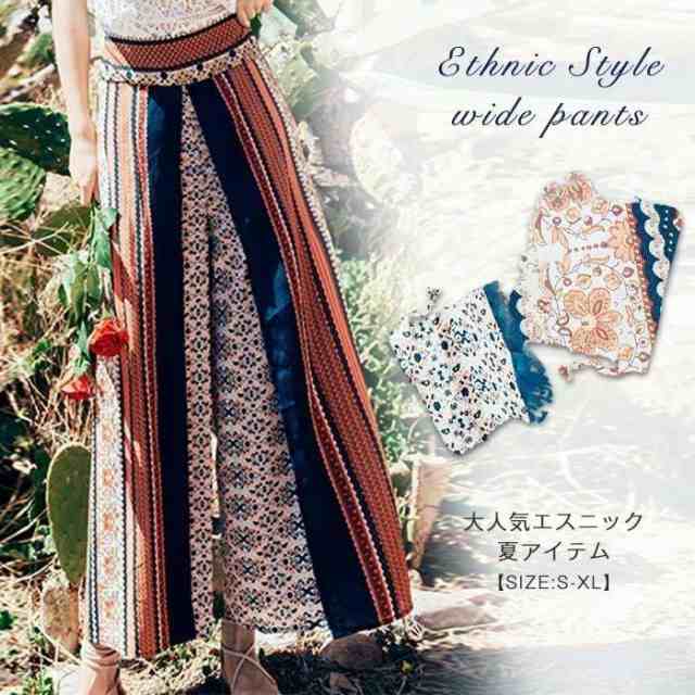 エスニック風 ワイドパンツ レディース ガウチョパンツ シフォンパンツ フレアパンツ ロングパンツ ゆったり パンツ リラックスパンツ おしゃれ 夏