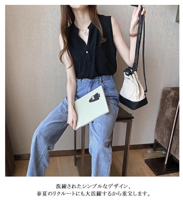 | ノースリーブシフォンブラウスです。 夏のオシャレにピッタリの透け感のある、軽く通気性の良い生地を使用しました。 袖なしの薄手デザインなので、春夏のスーツやカーディガンINしてもゴワつかず、アウターを響きにくいく、スッキリ綺麗なシルエットをキープ。 洗練されたシンプルなデザイン、春夏のリクルートにも大活躍するから重宝します。 さらりとした柔らかな生地、シワになりくく、洗濯okなので、お手入れかんたん。 1枚はもちろん、スーツやジャケット、ニットやパーカーなどのインナーとして一年を通してご着用いただけます。 | |