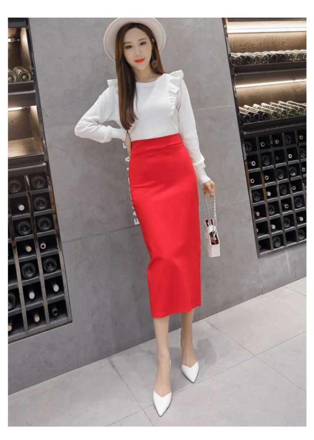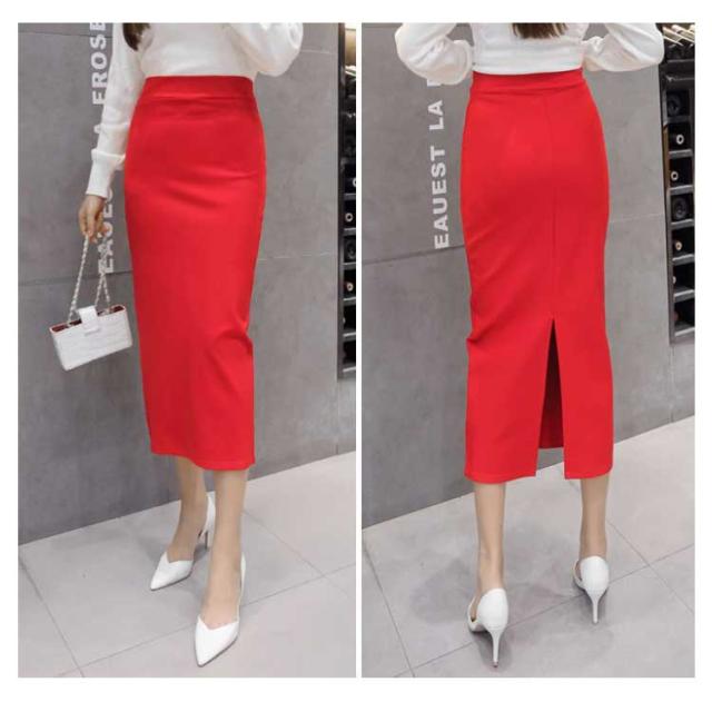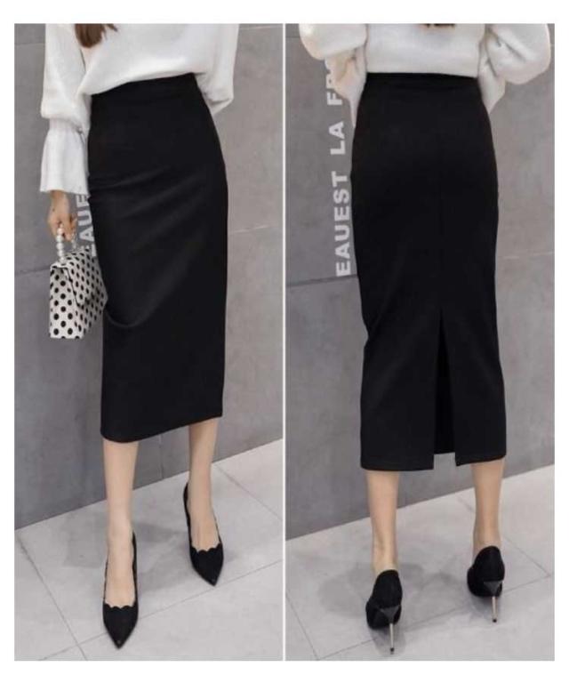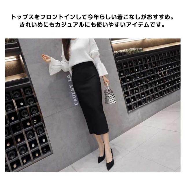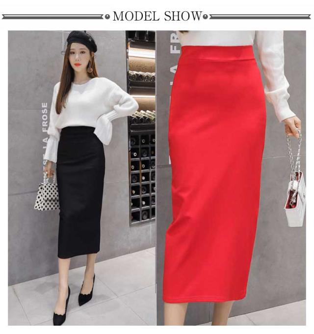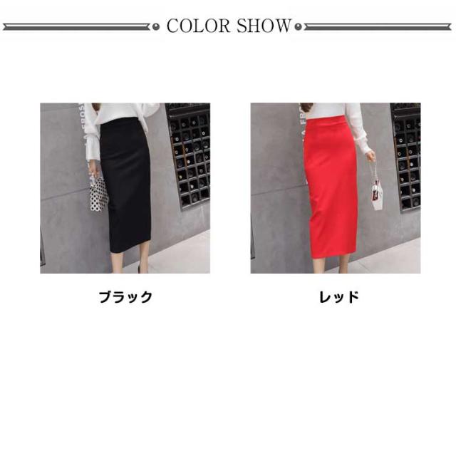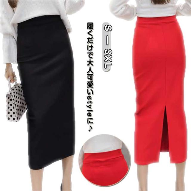 スカート ロングスカート レディース タイト スカート バック スリット入り ボトムス ロング丈 ストレート 膝下 ミドル丈 タイトスカート ウエストゴム ブラック 無地 春 夏 秋 冬 黒 無地 ブラック レッド 細見え 着痩せ 大きいサイズ 通勤 OL オフィス 送料無料