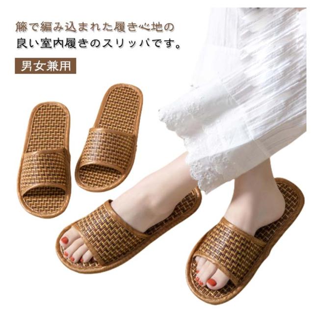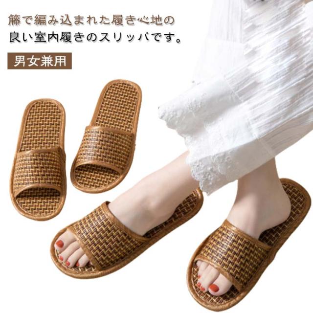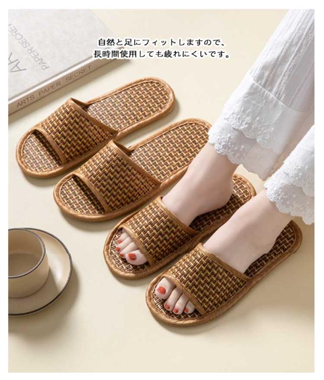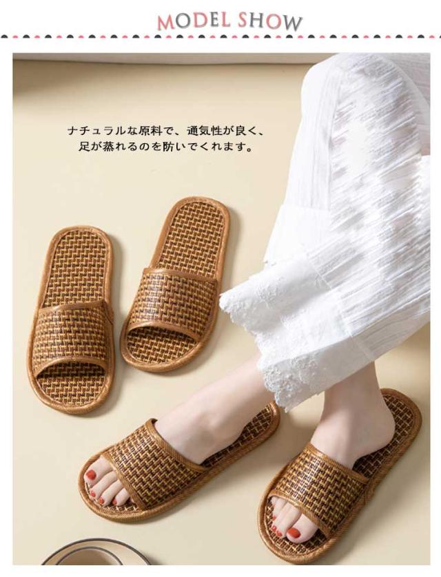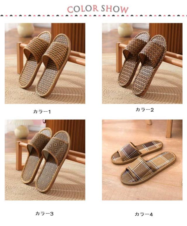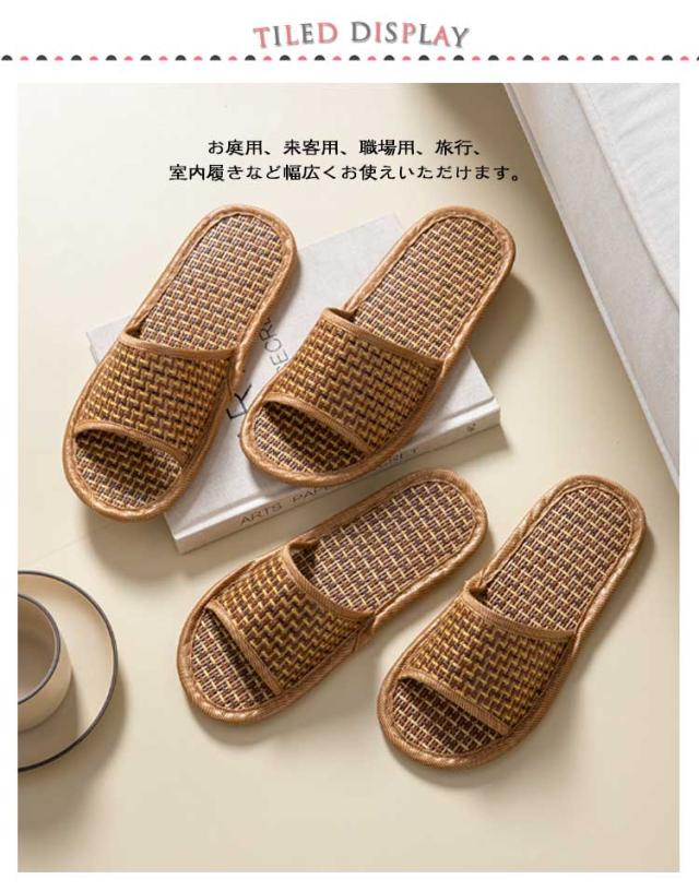 スリッパ 室内靴 夏用 藤草編み 男女兼用 リネンスリッパ メンズ レディース おしゃれ 和風 ルームシューズ 室内靴 滑り止め 通気 来客用 部屋用 自宅 シューズ 春夏秋 通気性 軽量 家族 カジュアル