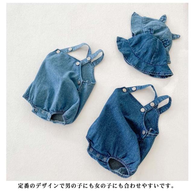 ロンパース 赤ちゃん ベビー服 帽子付きサロペット オーバーオール ロンパース ベビー サロペット デニムサロペット ベビー デニムオーバーオール オールインワン 男の子 女の子 男児 女児 男女兼用 春 夏 デニム 赤ちゃん 子供 キッズ 幼児 66cm 73cm 80cm 90cm