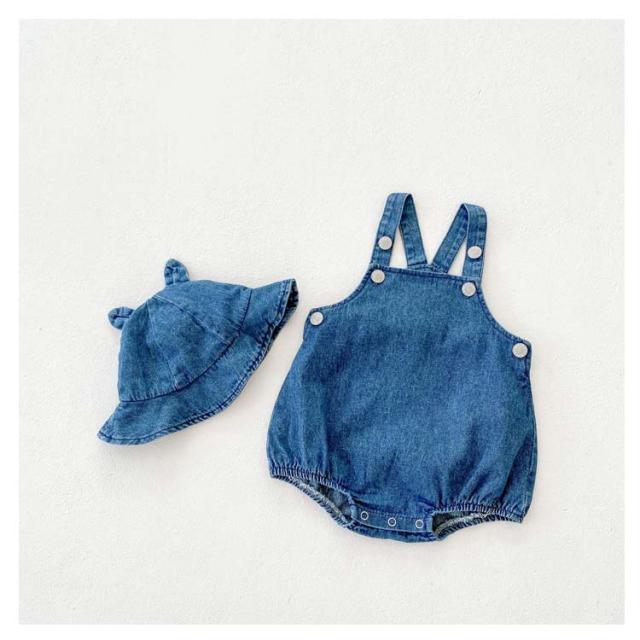 | 耳付き帽子がセットになったおしゃれなデニムのサロペット! かわいいシンプルデザインのデニムサロペットです。 丈夫で型崩れしにくいため、ご家庭でのお洗濯も簡単。 定番のデザインで男の子にも女の子にも合わせやすいです。 | |