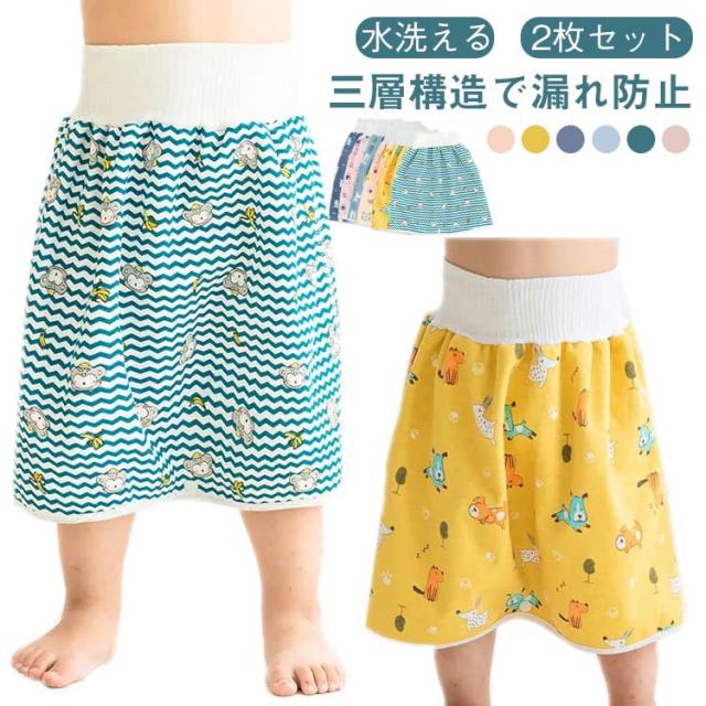 【2枚セット】ベビー おねしょズボン おねしょ パンツ トレーニングパンツ 隔尿パンツ 女の子 男の子 綿 洗える 防漏 三層構造 隔尿スカート 幼児 おしっこ おねしょ対策 腹巻 漏れ防止 寝冷え対策 送料無料