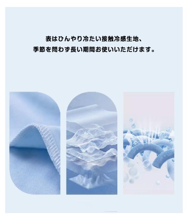 | ひんやり素材で涼しく快適に眠れる枕カバー 表はひんやり冷たい接触冷感生地、季節を問わず長い期間お使いいただけます。 エアコンが苦手な方でも快適に。節電・節約にもつながる環境にも優しいパッドです 暑さがこもりにくくムレにくい構造になっているので、汗をかいてもサラリとべたつきにくい爽やかな使用感です。 | |