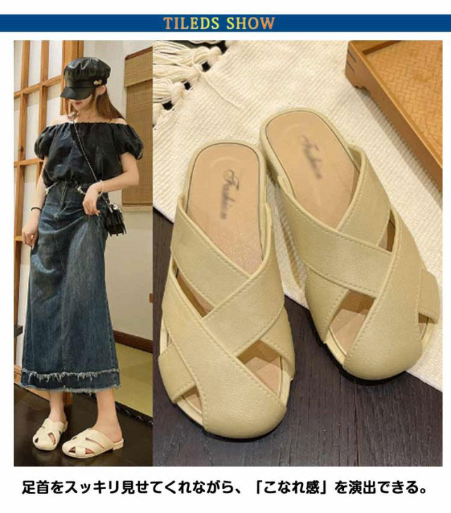 | トレンドと履き心地、美脚効果もゲットできる最旬シューズ。 足首をスッキリ見せてくれながら、「こなれ感」を演出できる。 かかとが無いので程よいこなれ感が生まれます。 楽ちんなフラットなので、歩きやすく履き心地抜群。 カジュアルからオフィスモードまで、幅広く活躍するアイテム。 | |
