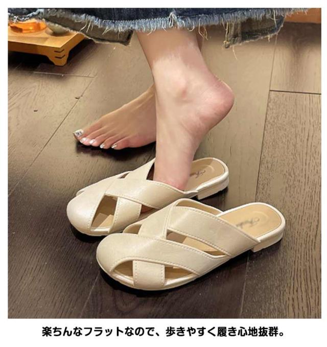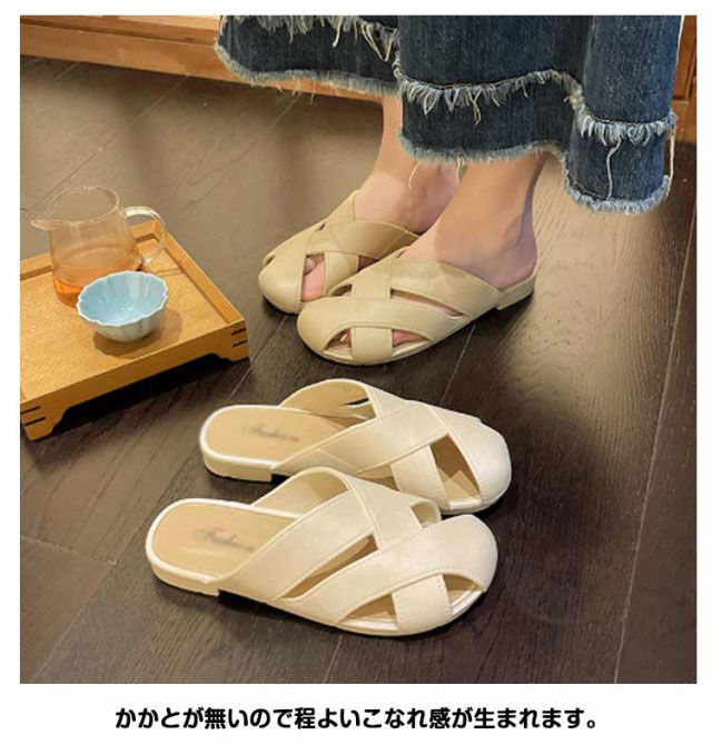 ミュール サンダル レディース スクエアトゥ 美脚 歩きやすい ローヒール ぺたんこ フラットシューズ スリッパ 痛くない 大きいサイズ 安定感 オフィス 婦人靴 おてかけ 旅行 リゾート 送料無料