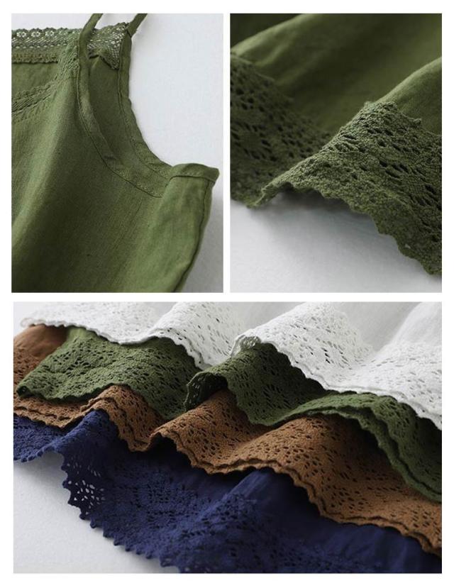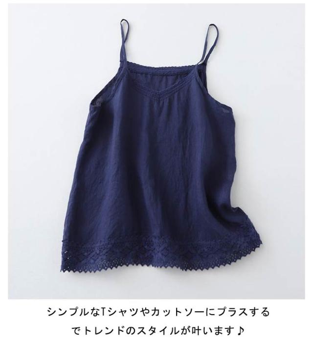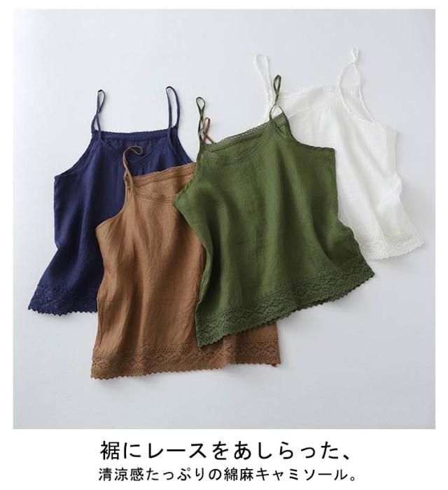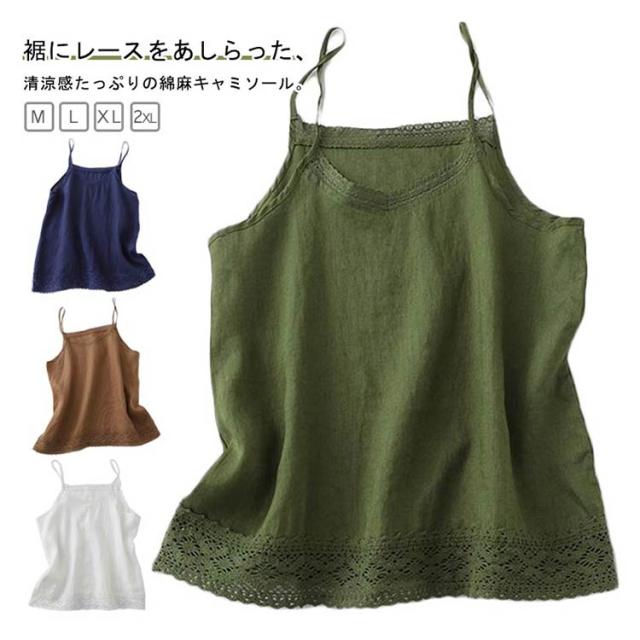 薄手 インナー キャミソール 重ね着 キャミソ 綿麻 コットンリネン インナー レディース トップス ノースリーブ 定番 インナーウェアインナー 下着 裾レース 肌着 重ね着 レイヤード 春 夏 夏物 ゆったり 20代 30代 40代 体型カバー通勤